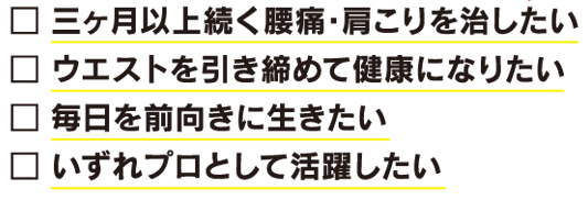 - 腰痛やしつこい肩こりの改善